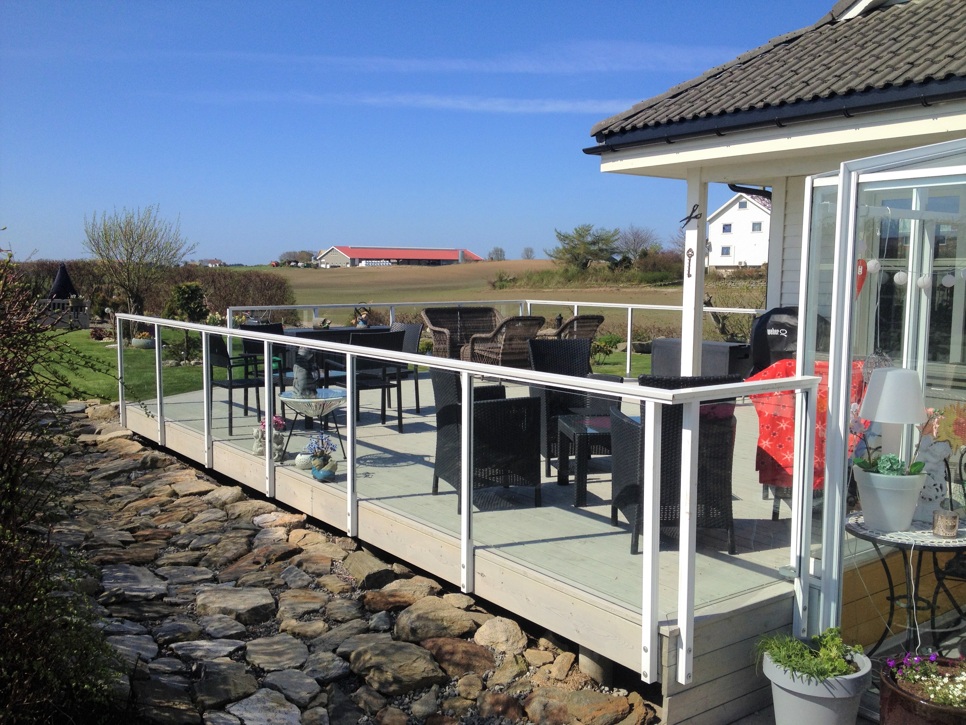 - Rekkverket monteres direkte oppå betong, tredekke eller platting