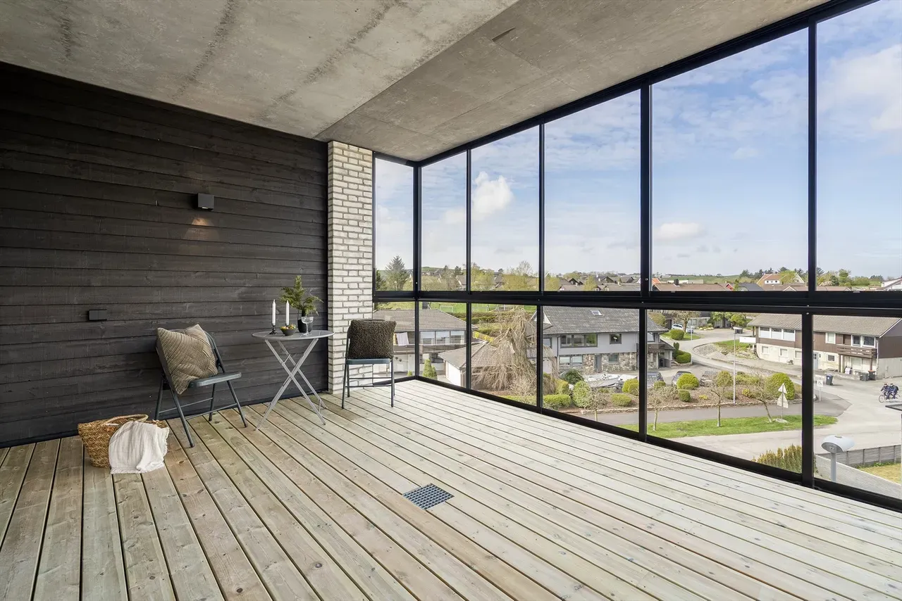 - Solskjerming og Temperaturkontroll: Innglassede balkonger kan bli svært varme om sommeren. Vurder installasjon av solskjerming, som rullegardiner eller spesielle solfilm på glasset, for å unngå overoppheting. Reflekterende glass eller UV-beskyttelse kan også være et alternativ for å redusere innstråling og beskytte interiøret på balkongen mot solbleking.