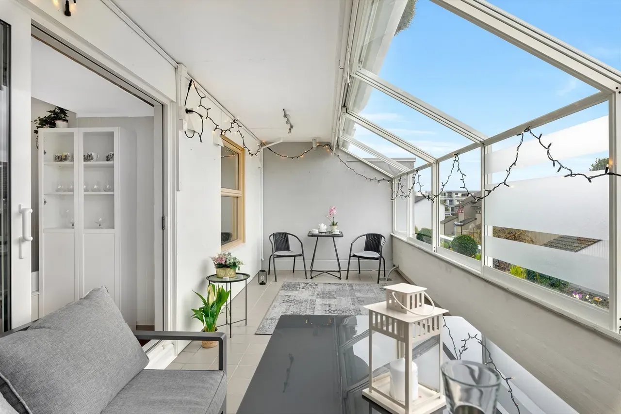 - Verdiøkning og Komfort: Innglassing kan øke boligens verdi ved å gi ekstra brukbart areal, som kan benyttes gjennom store deler av året. Mange ser på dette som en attraktiv investering, både for egen komfort og som et salgsfremmende tiltak. En innglasset balkong kan også redusere støynivået fra trafikk og andre eksterne støykilder, noe som gjør balkongen til et mer komfortabelt sted å oppholde seg.