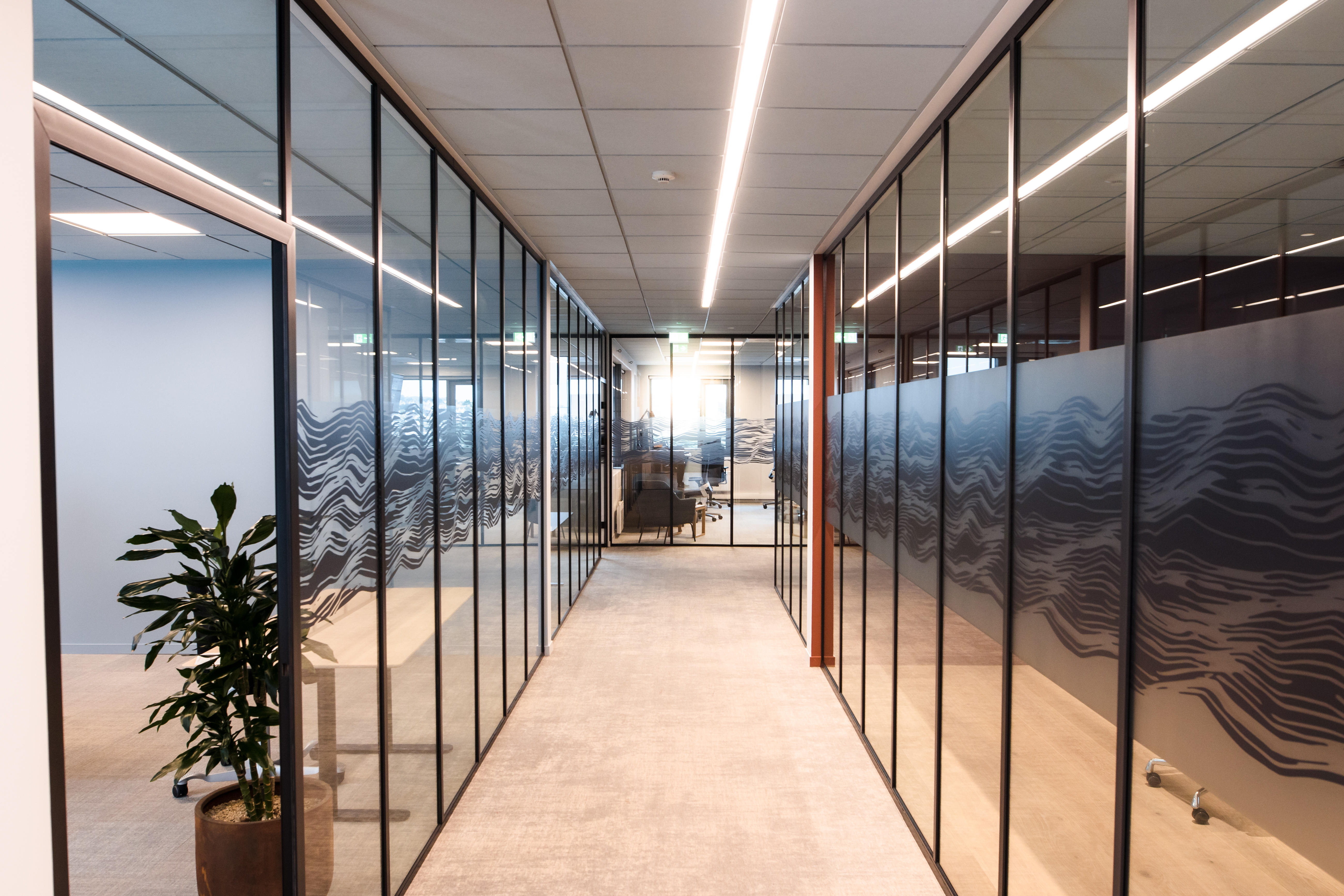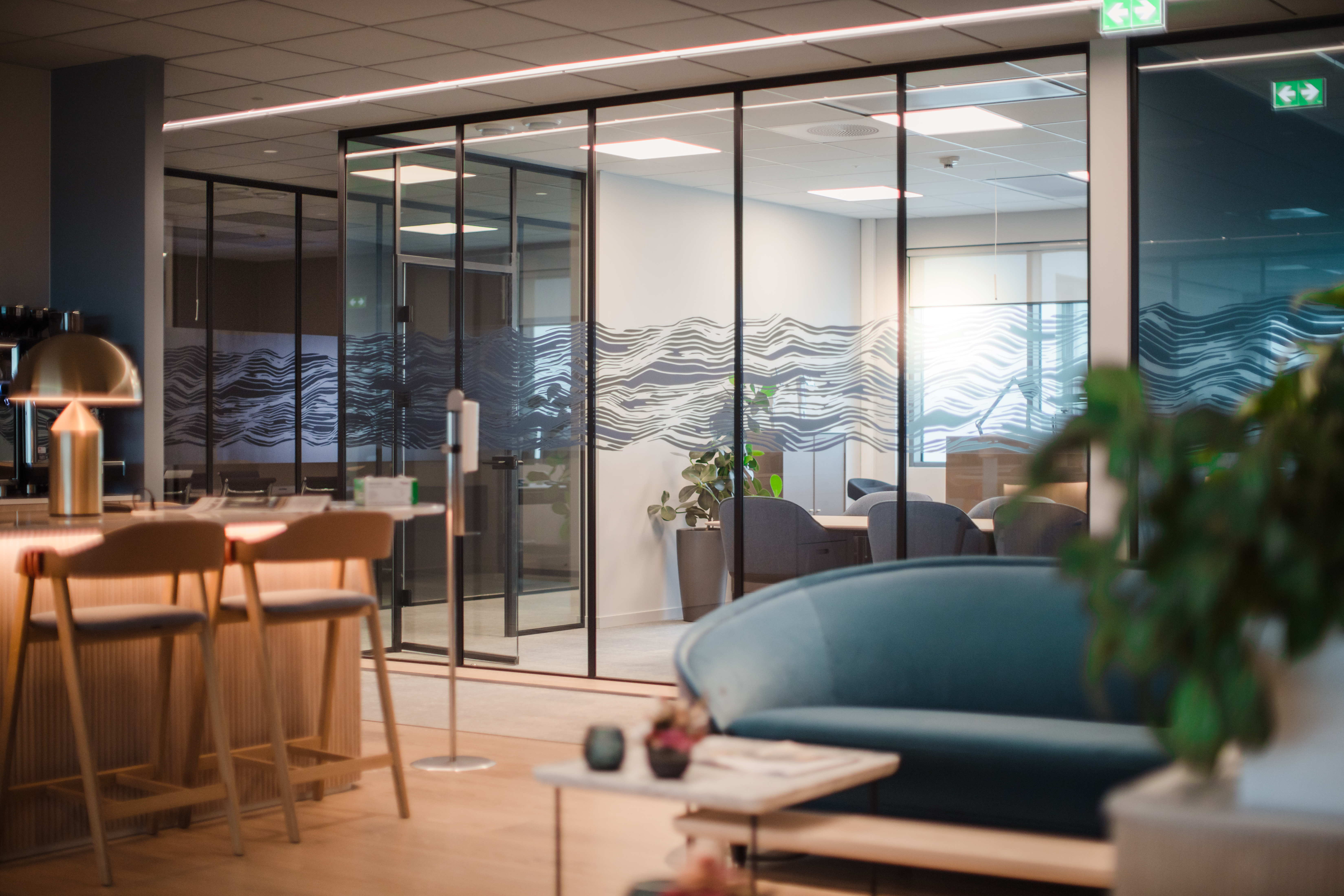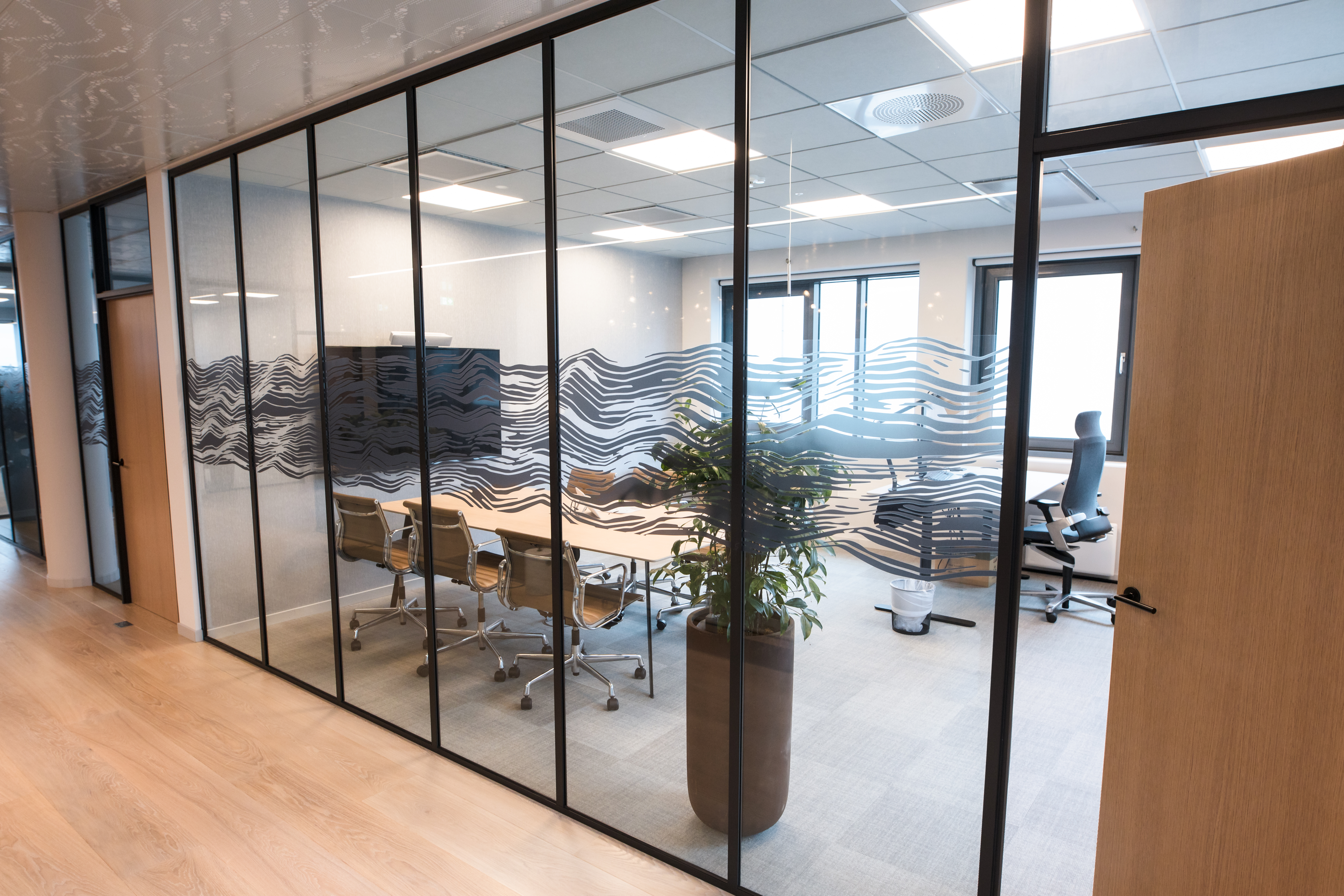 – For oss var glassvegger den åpenbare løsningen. Det gir naturlig lys i hele kontorlokalet, samtidig som det stenger for støy og gir rommene et unikt preg.