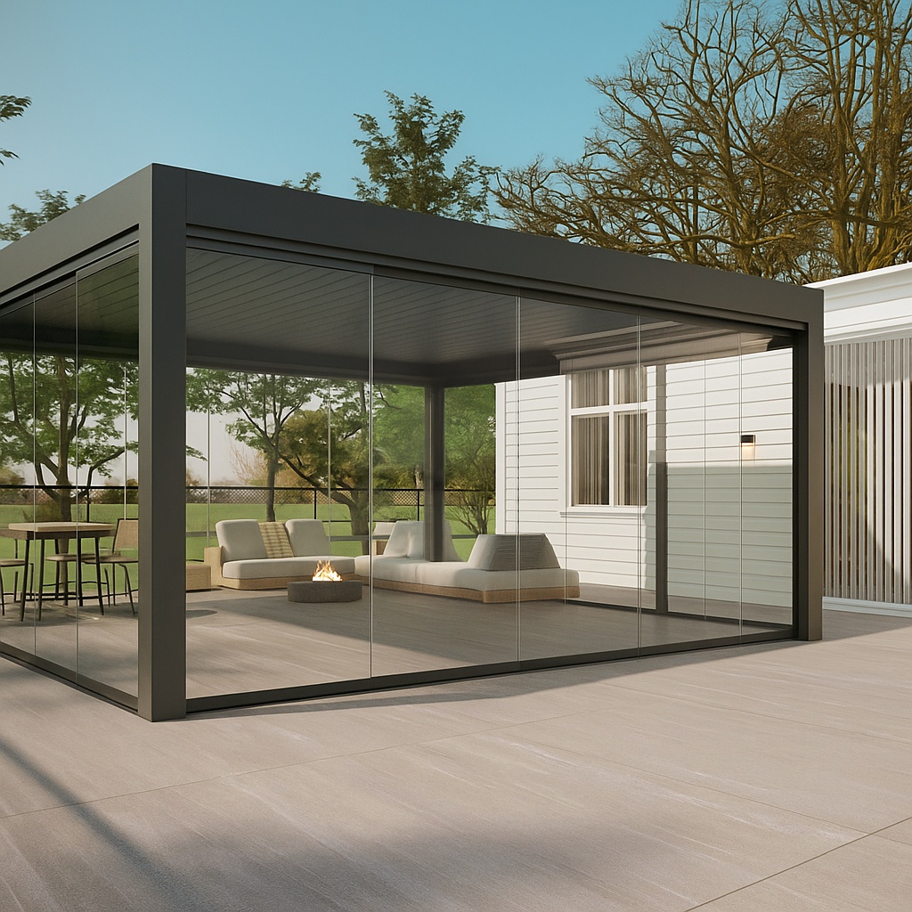 - Kan kombineres med glassvegger og tak for bruk store deler av året