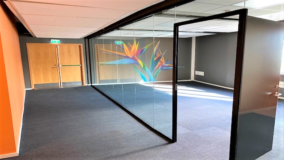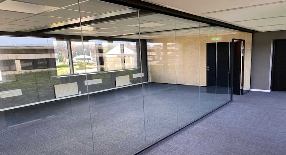 Helglass kontorvegger gir maksimalt lys og et moderne, transparent uttrykk. Ideelt for arbeidsplasser som ønsker åpne, stilrene soner.