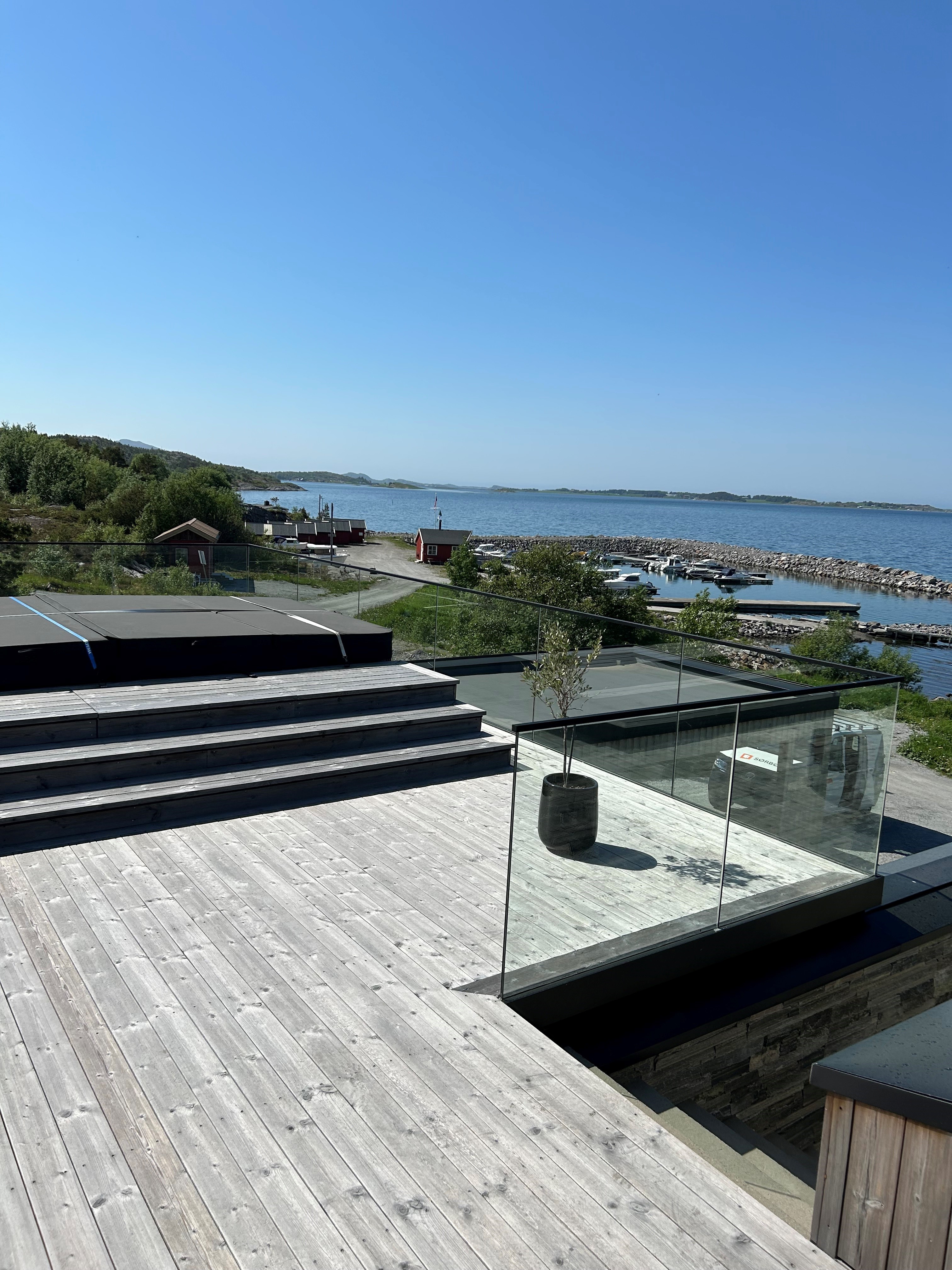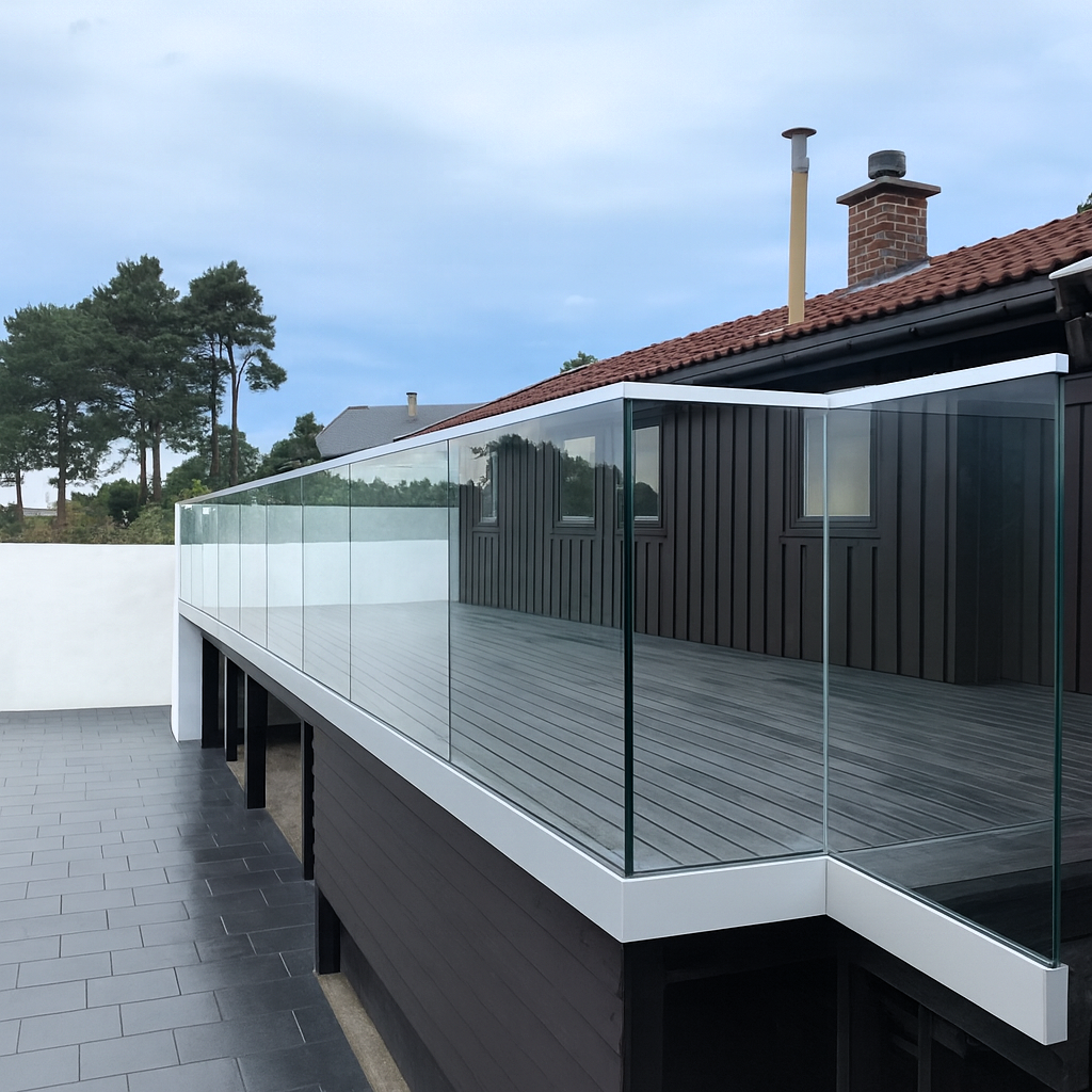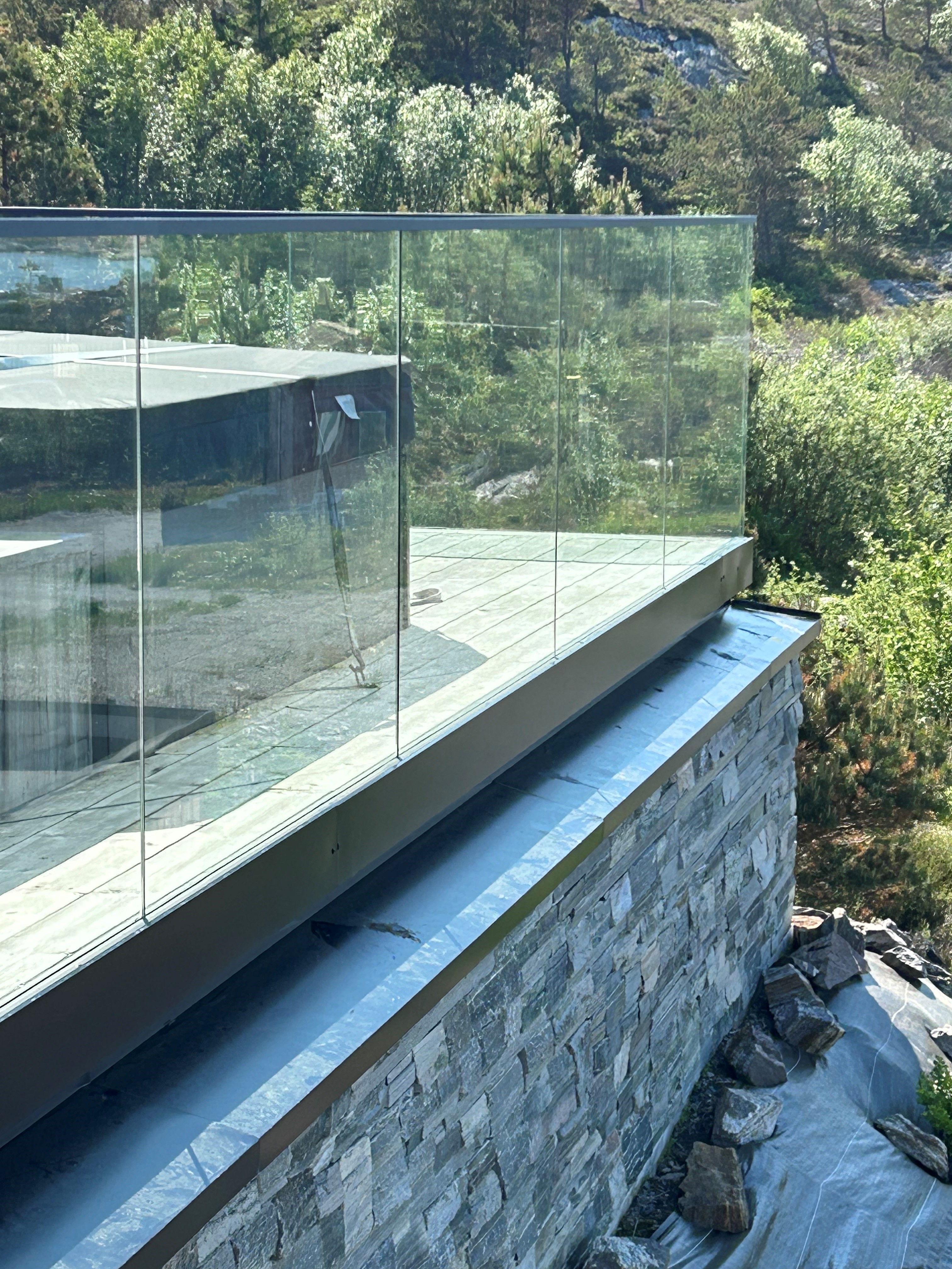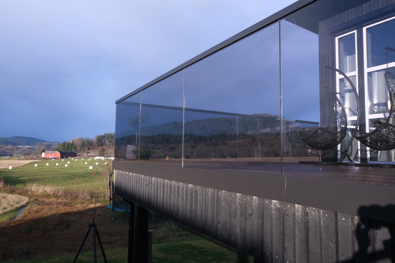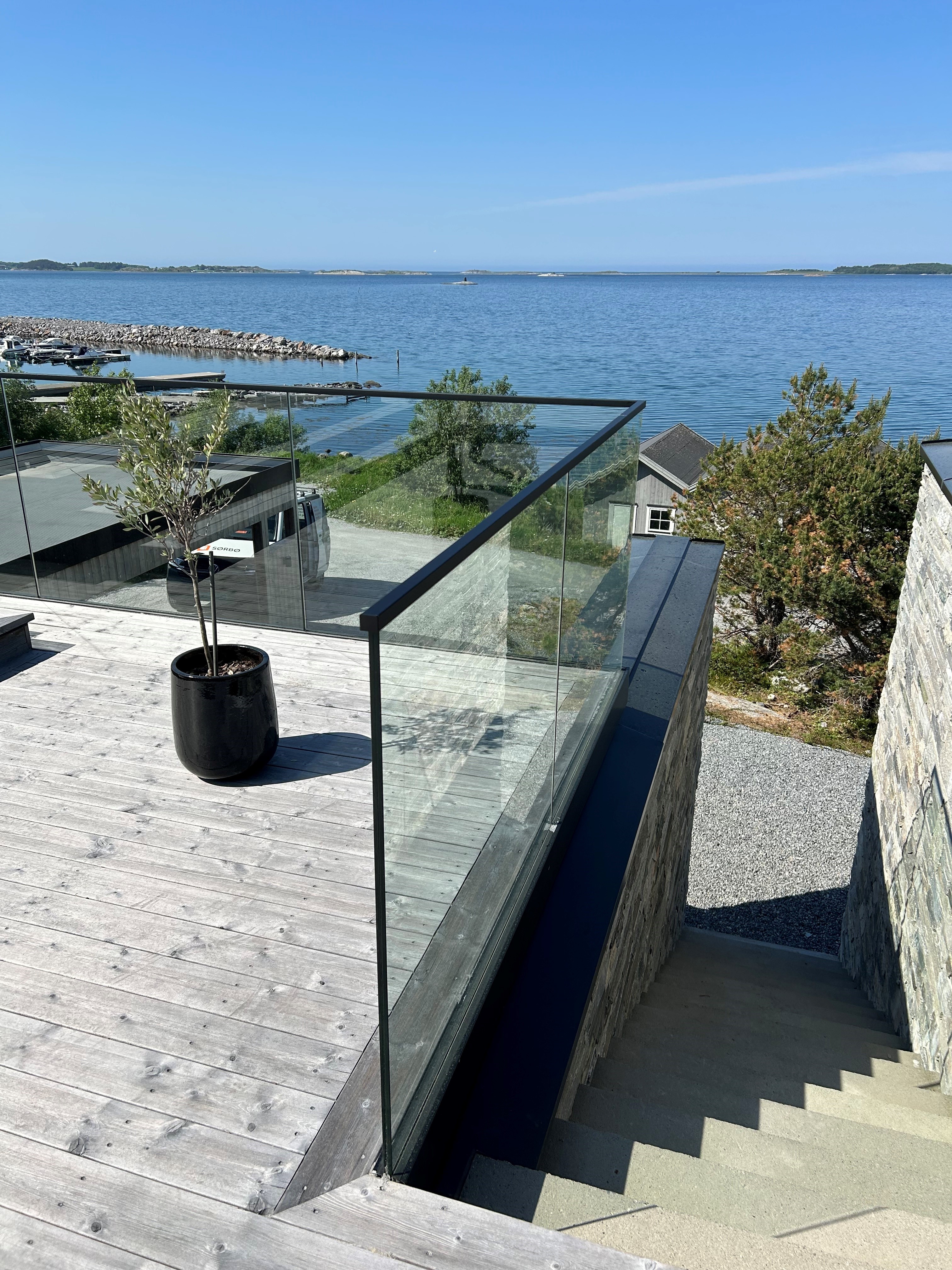 Med helglass får du en luftig, ren og tidløs estetikk som fremhever arkitekturen – samtidig som herdet og laminert sikkerhetsglass gir styrken som kreves for å tåle norsk klima og daglig bruk. Rekkverket oppfyller gjeldende krav til sikkerhet og belastning, samtidig som det gir et minimalistisk uttrykk uten kompromiss på kvalitet.