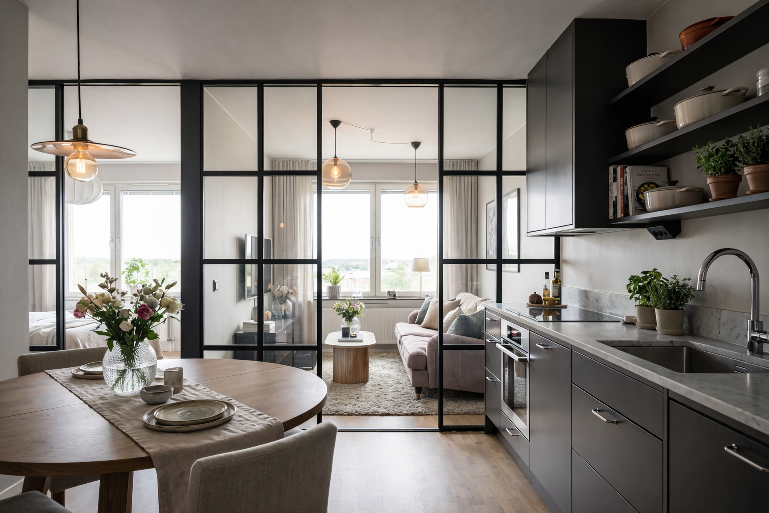 Glass slipper lys gjennom og gjør rommene større og mer åpne, samtidig som du kan skape tydelige soner når du trenger det.