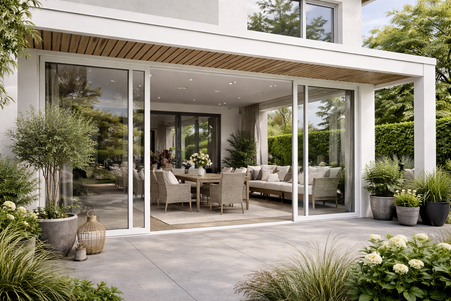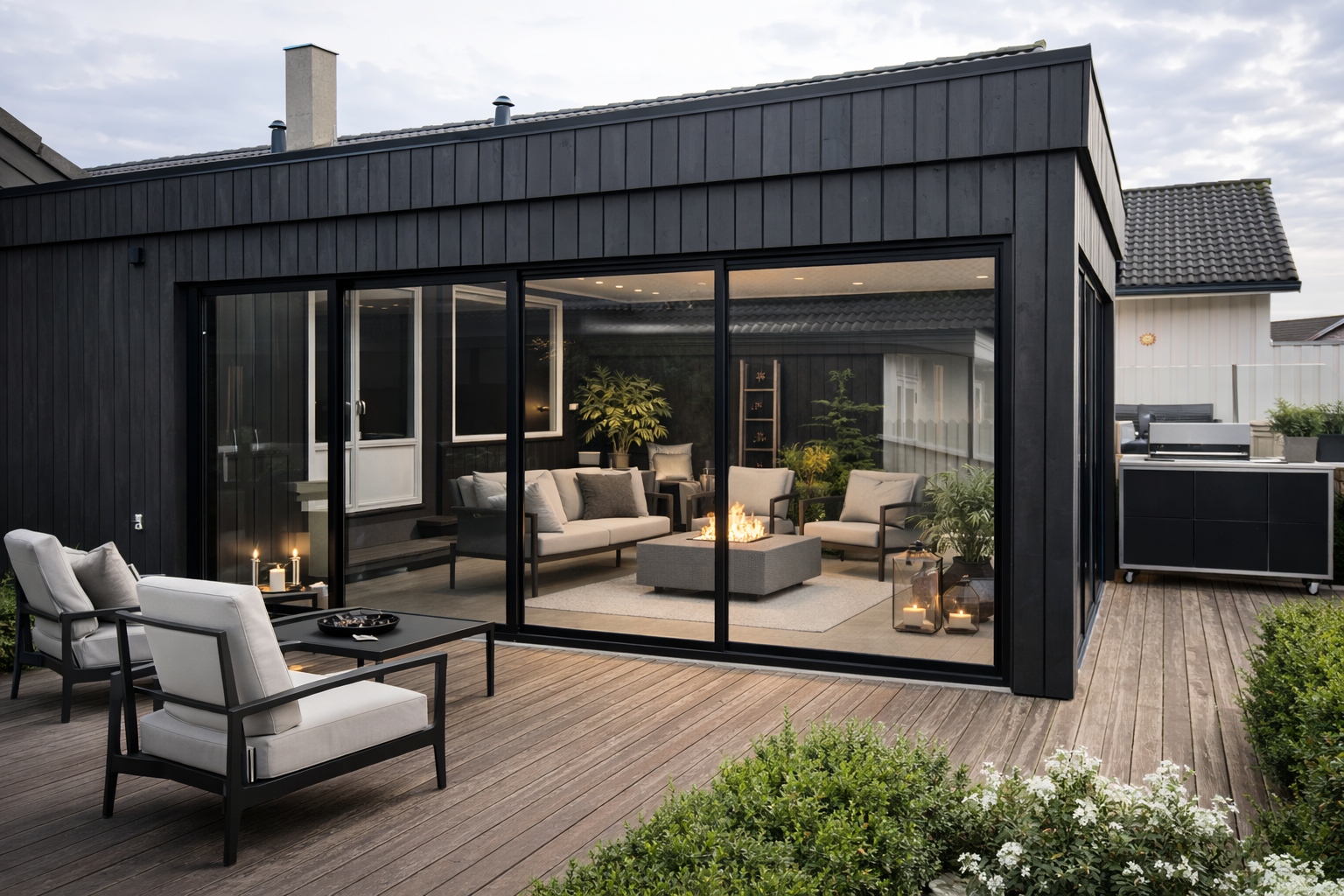 Enten du bygger ny hagestue eller oppgraderer en pergola, gir 4-spors skyvedører deg friheten til å bruke uterommet akkurat slik du vil – hele året.
