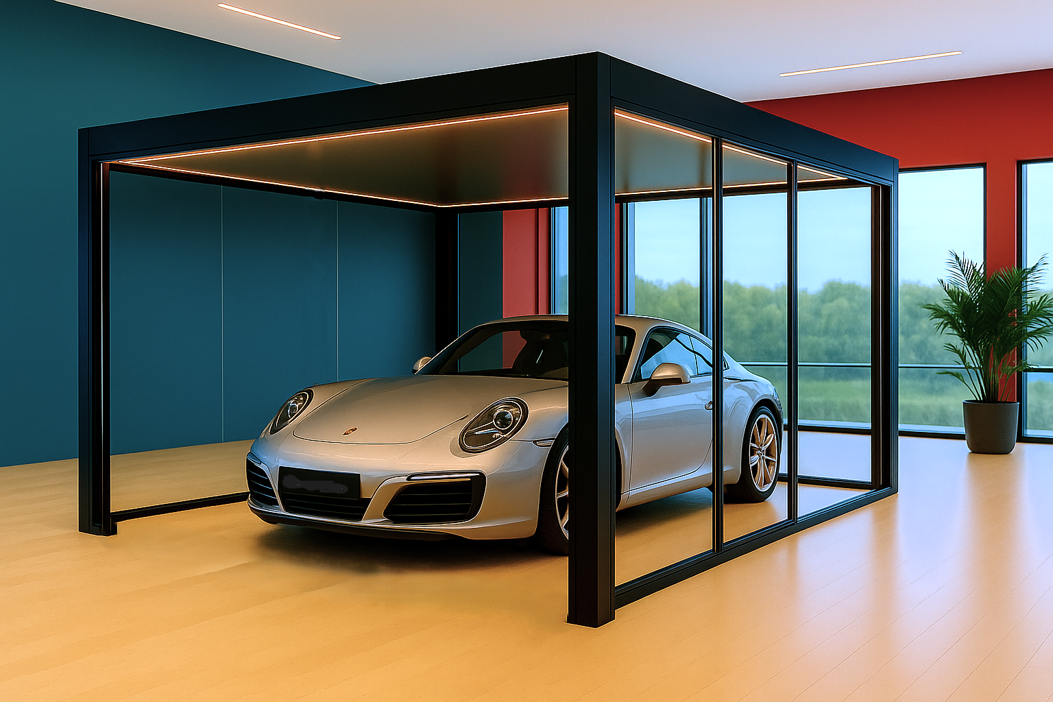 Utstillingssone i glass og aluminium – eksklusiv presentasjon og maksimal synlighet