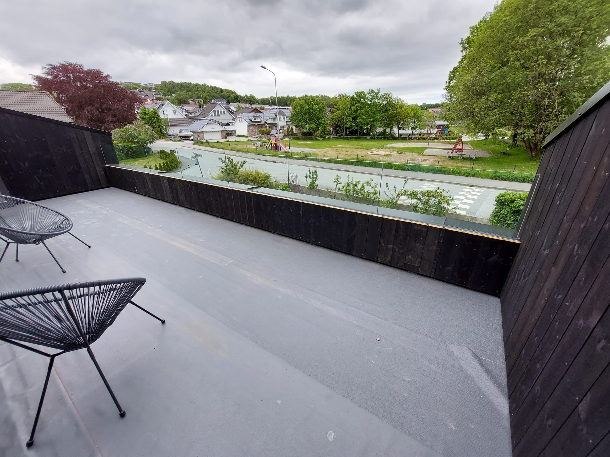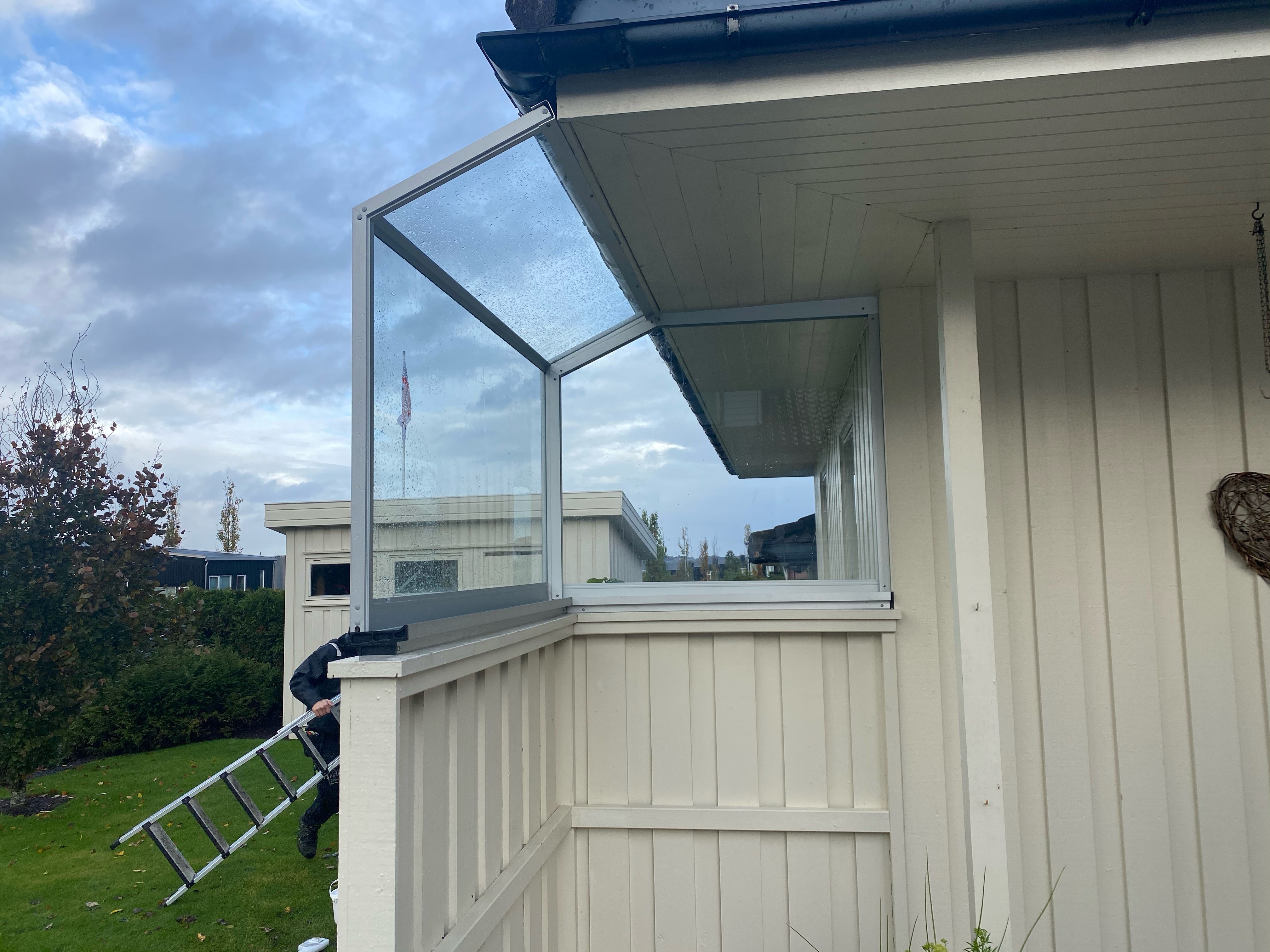 Pulverlakkert aluminium og sikkerhetsglass tåler høy vindlast, regn og temperatursvingninger.