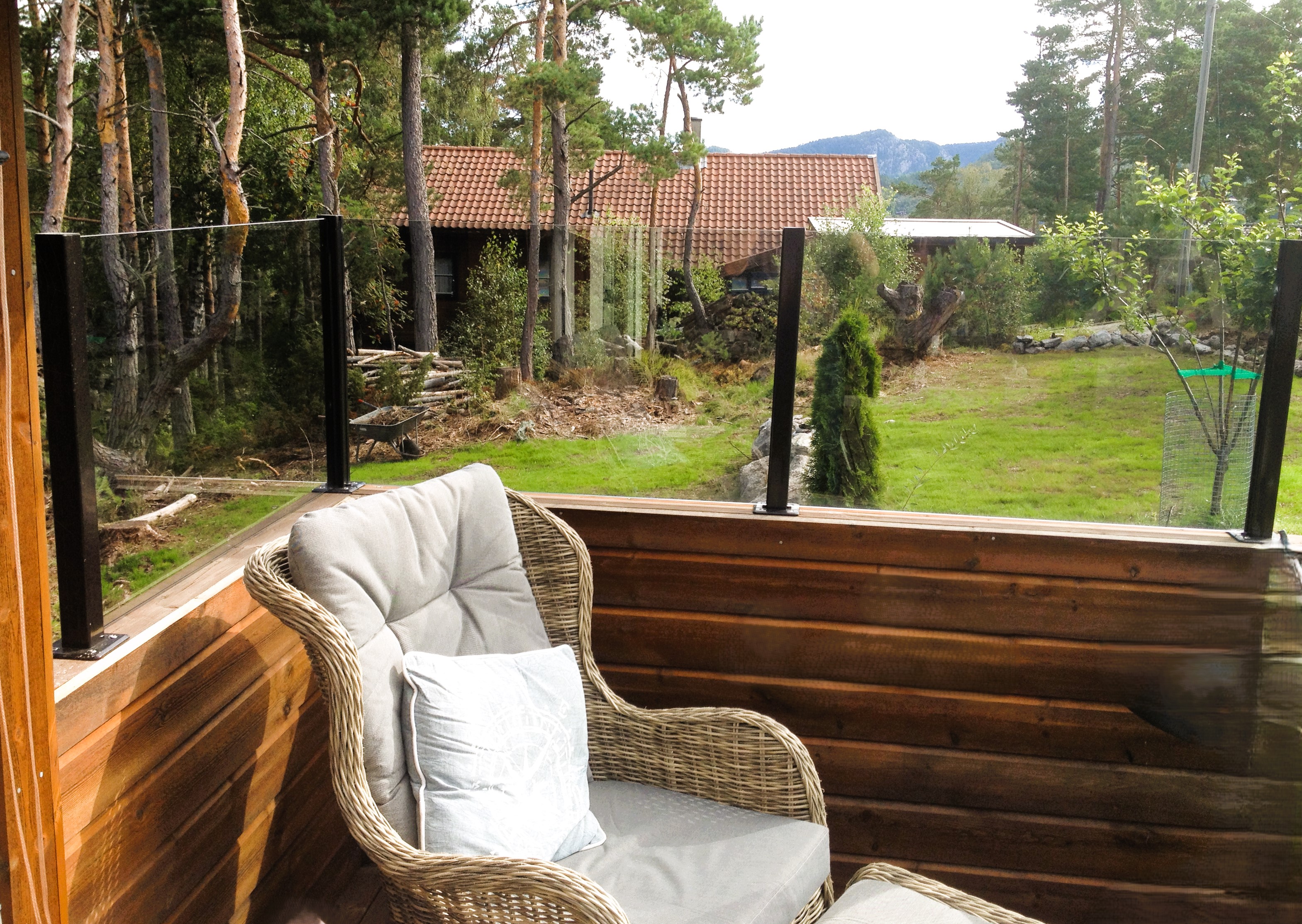 Leveres med ulike glassvalg, høyder og festemetoder – perfekt for terrasse, balkong, hage og inngangsparti.